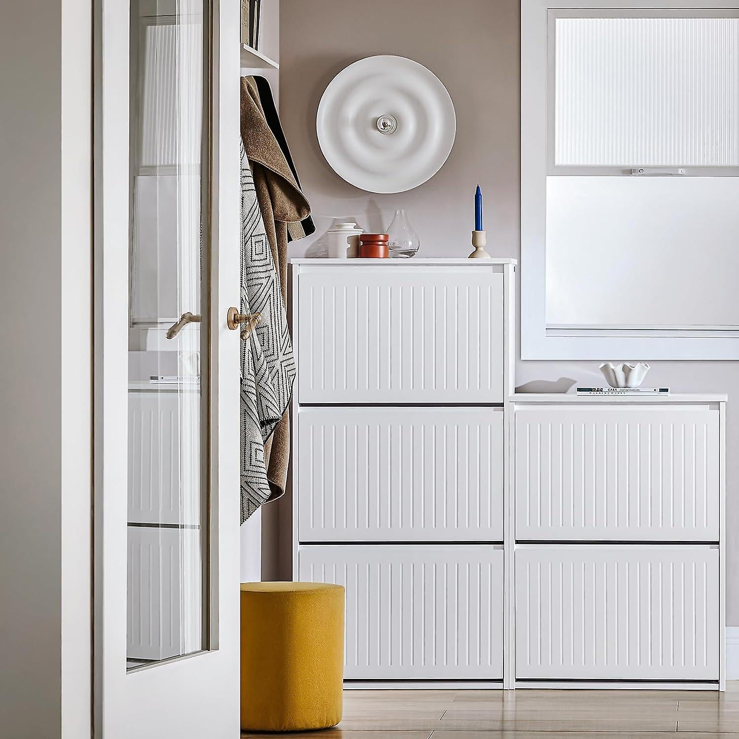 Ce meuble à chaussures moderne avec 3 tiroirs rabattables est une solution pratique et élégante pour ranger les chaussures. Parfaite pour le couloir ou le porche, cette armoire aide à garder votre espace propre et organisé.