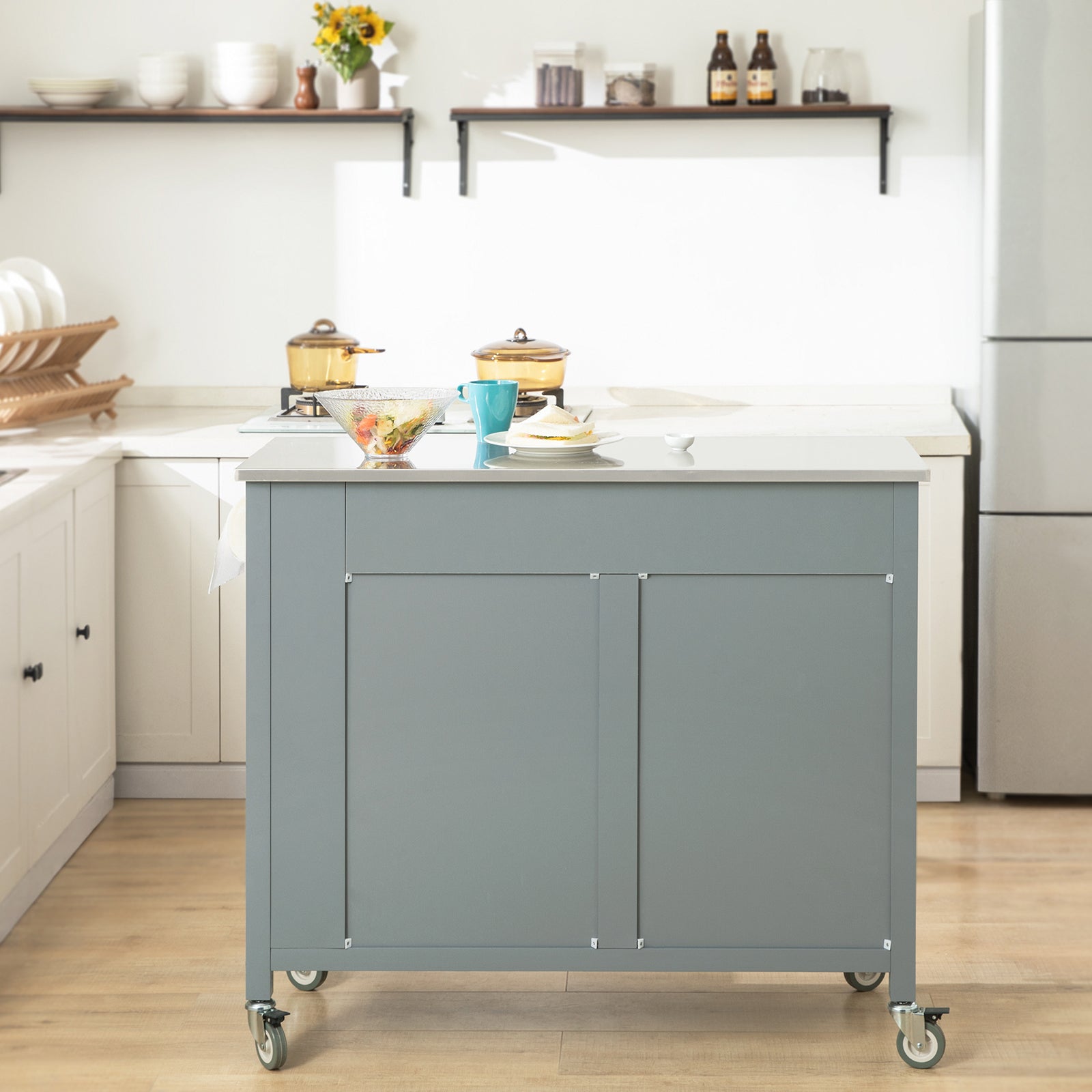 SoBuy Armoire de cuisine sur roulettes - 94x107x46 cm - Max. 75KG - Gris