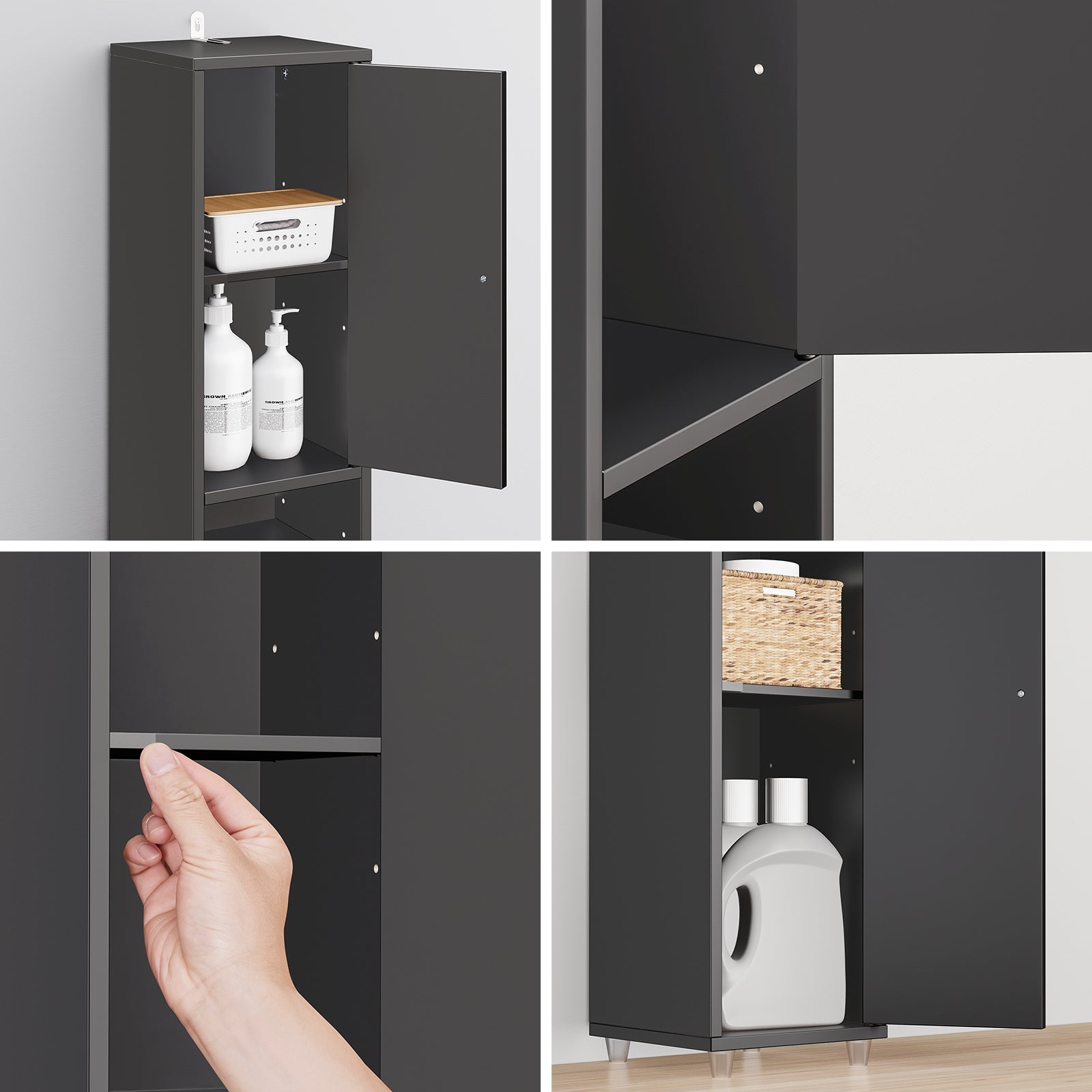Cette armoire haute et étroite de SoBuy est conçue pour ceux qui veulent utiliser intelligemment chaque centimètre dans leur maison sans faire de compromis sur l'apparence. Grâce à son design noir élégant et à sa taille compacte, cette armoire colonne s'intègre sans effort dans une petite salle de bain, un couloir étroit, une chambre ou même un salon. La hauteur garantit un espace de rangement maximal, tandis que la silhouette élancée préserve la tranquillité et la vue d'ensemble.