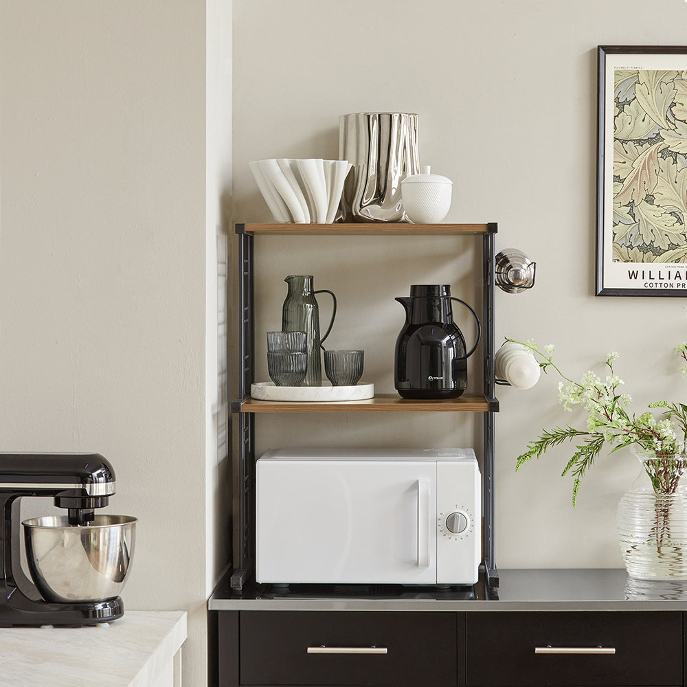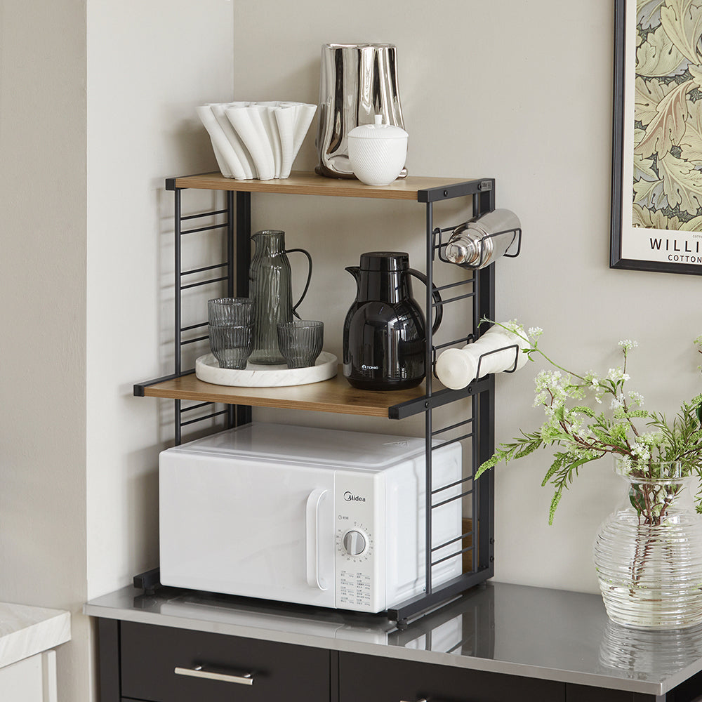 - Design ingénieux : ce support pour micro-ondes est un mélange élégant d'un cadre en fer robuste et de panneaux vintage. Il crée une atmosphère élégante et classique dans votre cuisine ou votre salle à manger !