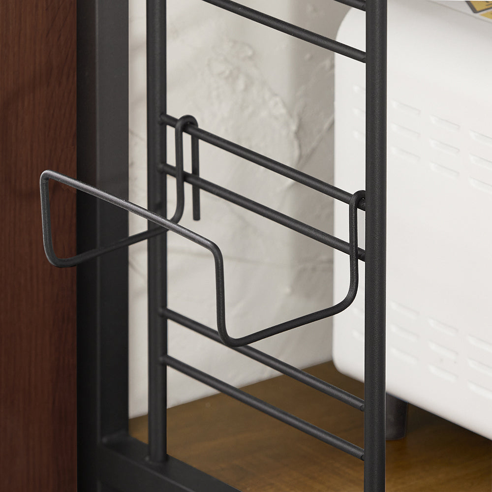 - Grand espace de rangement : avec 2 étagères et 2 porte-bouteilles amovibles. L'étagère peut être utilisée pour le micro-ondes, le four, le grille-pain, la cafetière, etc. L'aspect simple et généreux convient également aux bureaux, aux études.