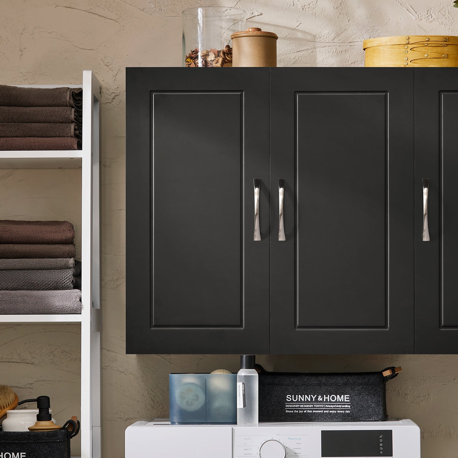 Cette élégante armoire murale SoBuy FRG231-L-SCH en noir est un meuble polyvalent et pratique pour toute maison moderne. Avec son design élégant et son agencement fonctionnel, cette armoire murale est idéale pour une utilisation dans la salle de bain, la cuisine ou le couloir. Avec deux portes et un total de trois compartiments de rangement, l'armoire offre suffisamment d'espace pour ranger soigneusement tous vos cosmétiques, médicaments, produits de soins personnels ou ustensiles de cuisine.