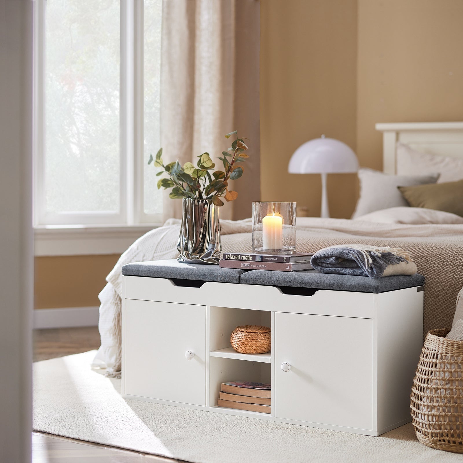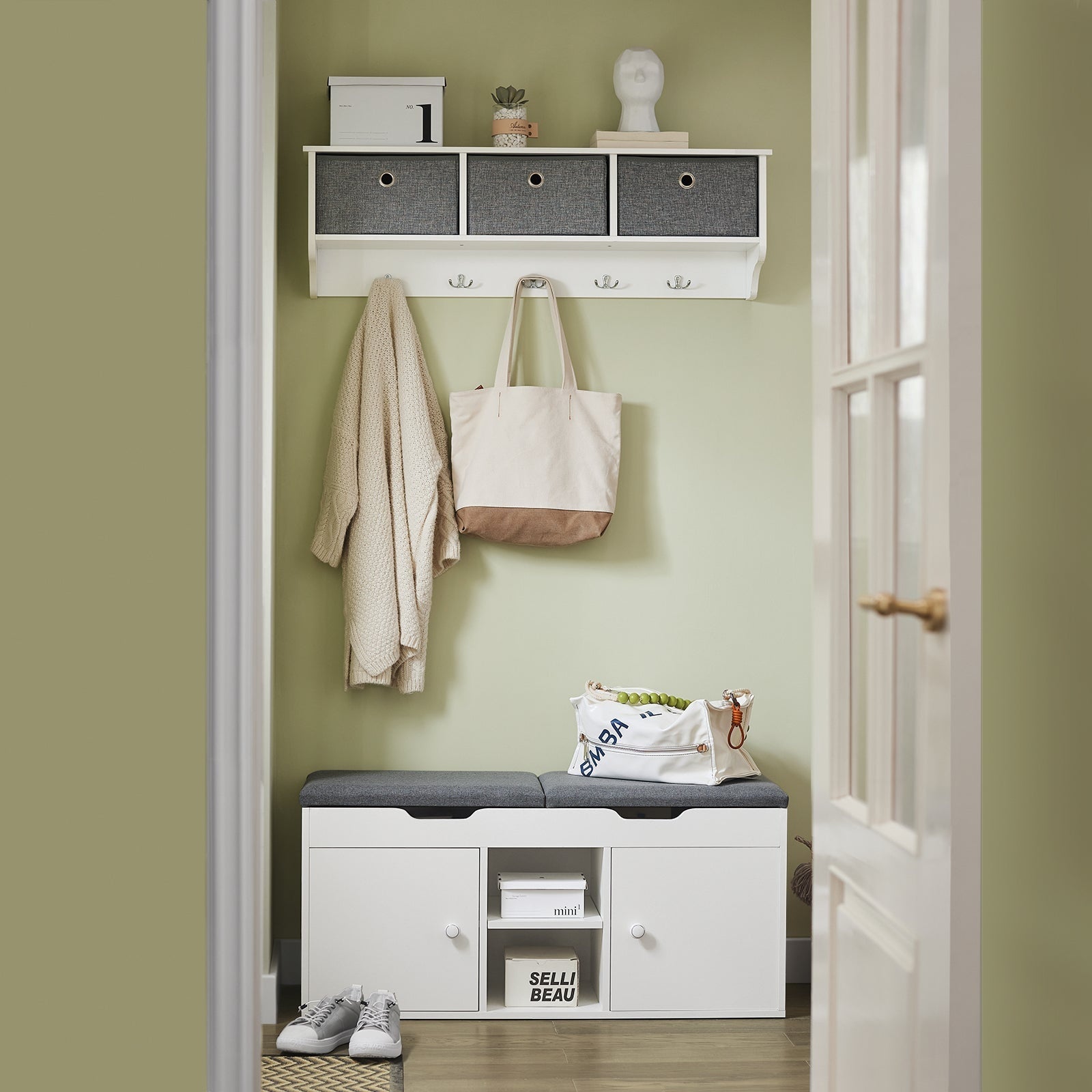 Banc SoBuy, Banc à chaussures avec 2 armoires, 100 x 34 x 48 cm, Blanc/ Gris