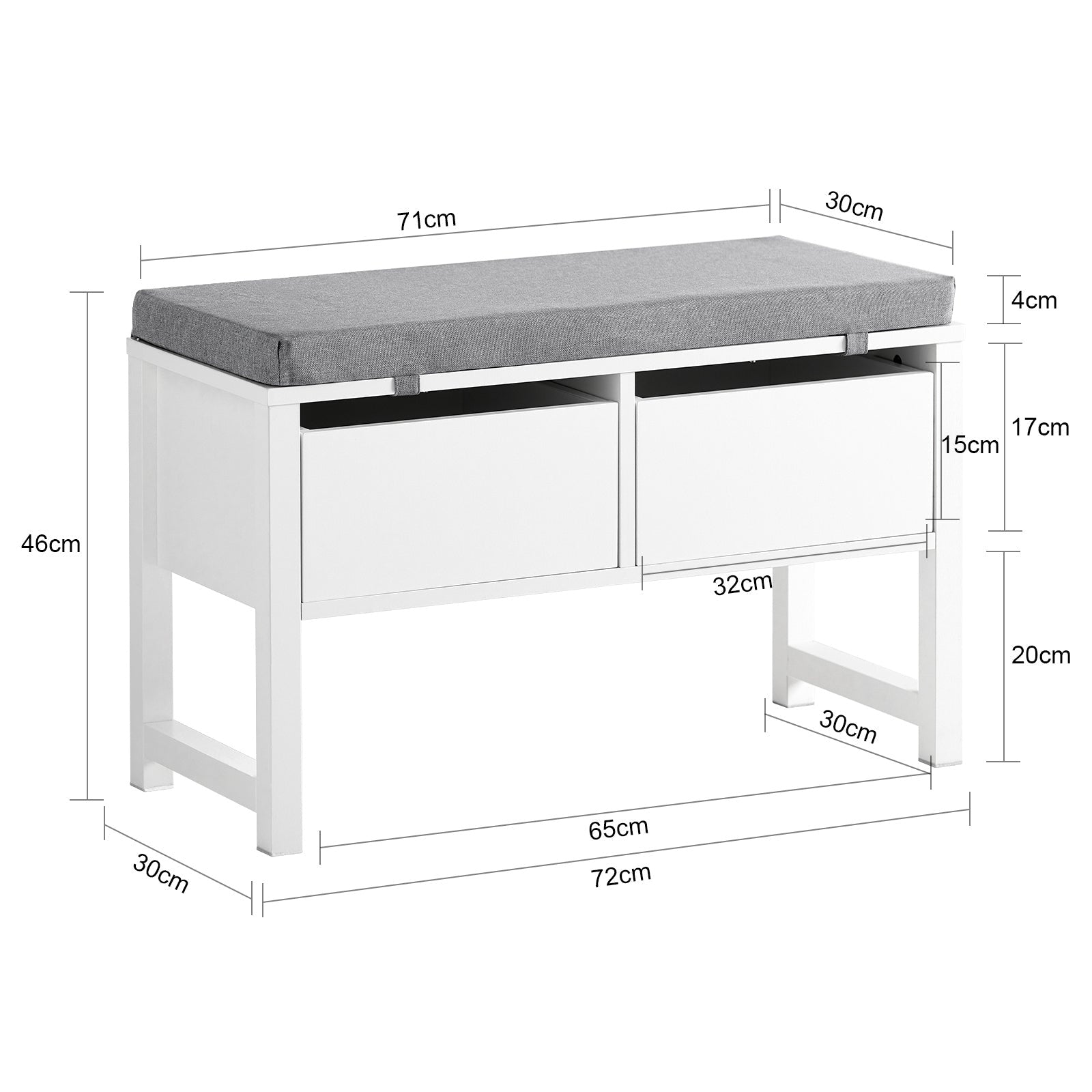 SoBuy Banc de rangement avec assise rembourrée - 2 tiroirs - Max. 150 kg - 72 x 30 x 46 cm - Blanc/ Gris