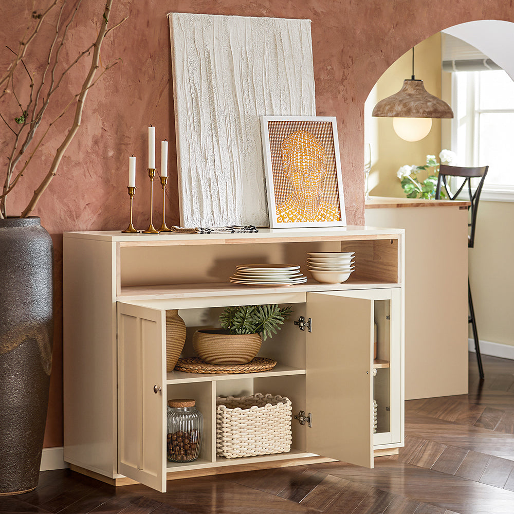 - Rangement supplémentaire: Un compartiment spécial pour les verres à vin et les bouteilles rend ce buffet parfait pour les amateurs de boissons.