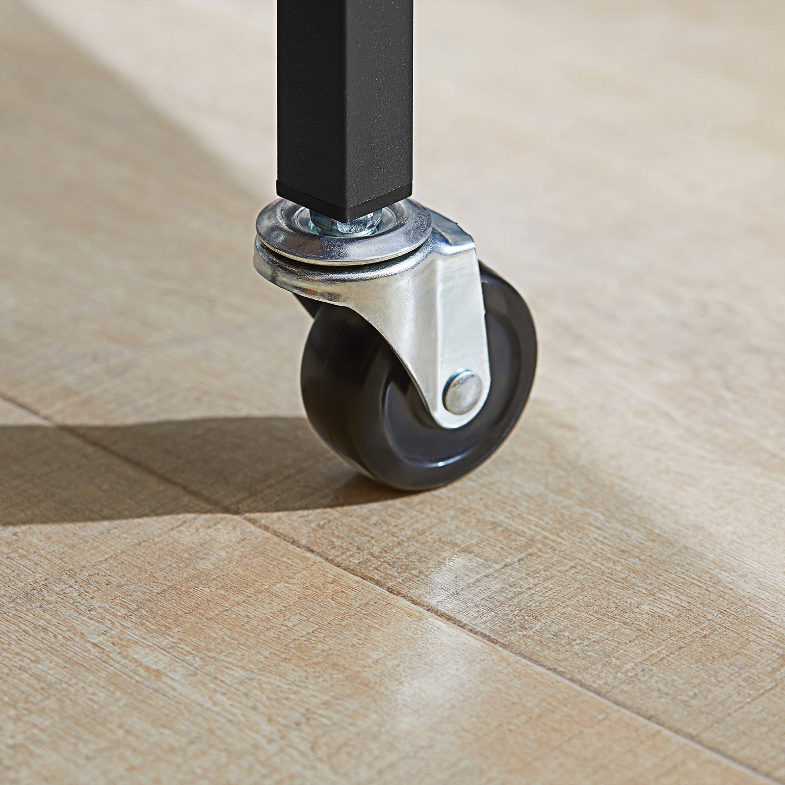 Ajoutez une touche de style industriel à votre cuisine avec ce chariot de rangement pratique. Que ce soit dans la cuisine, la salle à manger ou ailleurs, ce chariot polyvalent offre un vaste espace de rangement pour une grande variété d'ustensiles. Le chariot de cuisine en bois avec plateau est durable et s'intègre parfaitement dans tous les intérieurs. Les deux étagères de rangement sont idéales pour organiser les épices, les assiettes, les casseroles et autres articles fréquemment utilisés, tandis que les deux tiroirs sont parfaits pour ranger les couverts et les ustensiles de cuisine. Grâce aux quatre roulettes en plastique, dont deux sont verrouillables, le chariot est très mobile et peut facilement être placé n'importe où. Fabriqué à partir de matériaux de haute qualité tels que l'aggloméré de classe E1 et le métal, ce chariot est non seulement robuste et durable, mais aussi élégant et fonctionnel. Détails du produit : Matériaux : aggloméré de classe E1 et métal. Dimensions (LxLxH) : 100x45x93cm. Capacité de charge jusqu'à 60 kg. Combinez également ce chariot avec le chariot de cuisine FKW111-PF pour obtenir un ensemble complet. Grâce à la facture fournie, vous êtes assuré d'obtenir un produit de haute qualité qui répond à tous vos besoins en matière de rangement.