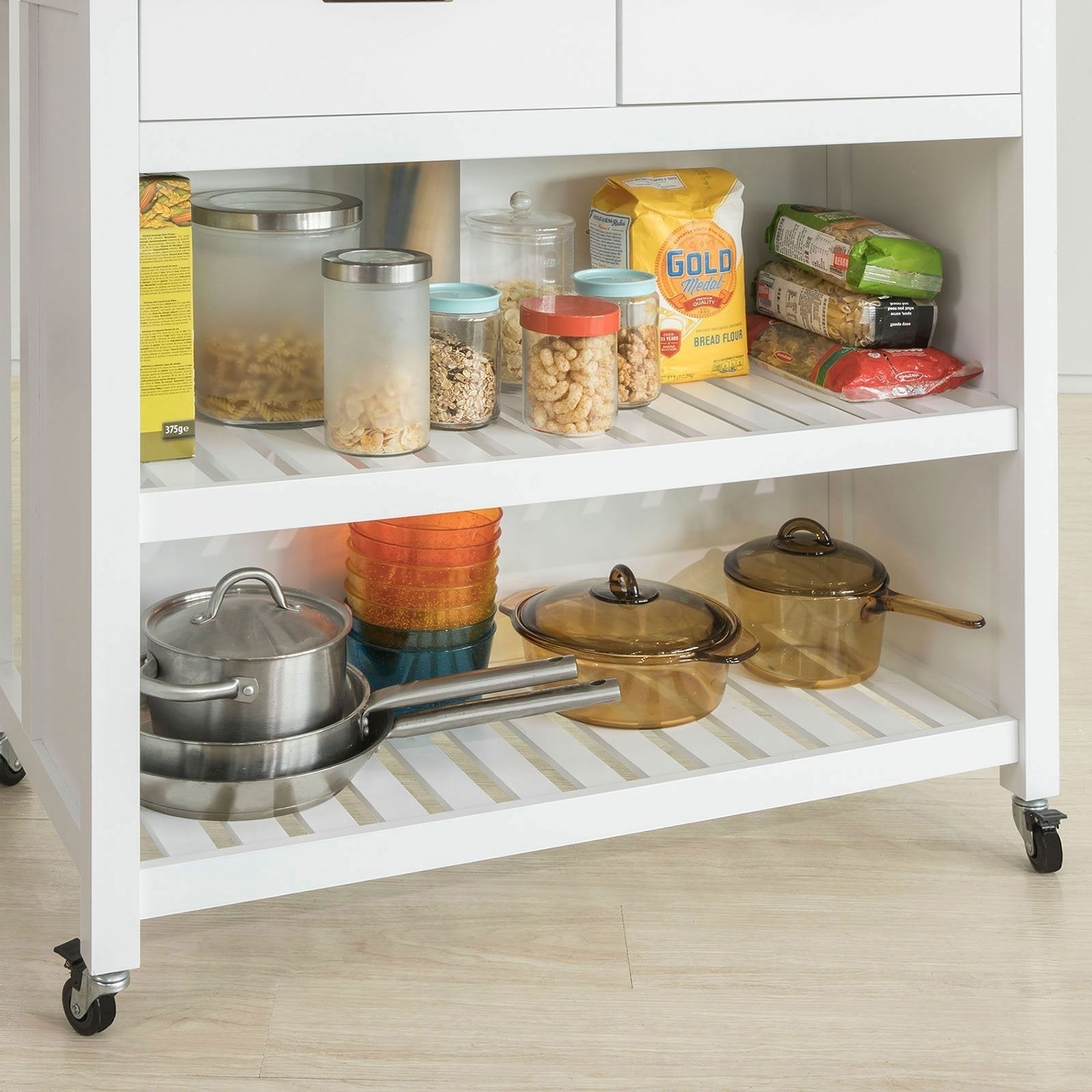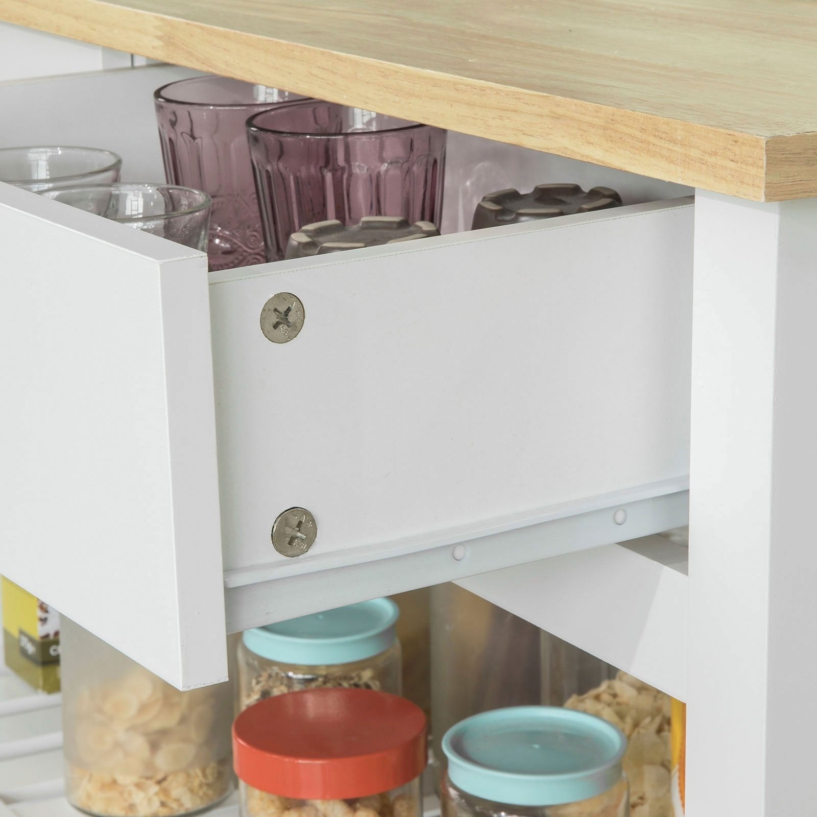 Chariot de cuisine sur roulettes - SoBuy - 2 tiroirs 2 étagères - 100x94x60 - Blanc
