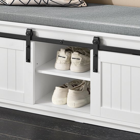 Ce banc à chaussures SoBuy avec portes coulissantes (FSR133-K-W) offre une solution élégante et pratique pour votre couloir, votre entrée ou votre chambre.