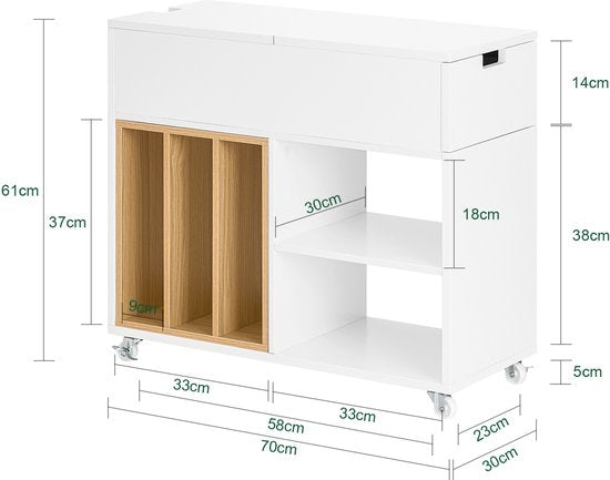 - Dimensions pratiques : 70 x 61 x 30 cm (l x h x p) - suffisamment compact pour les espaces limités, mais offrant beaucoup d'espace de rangement pour tous vos articles essentiels.