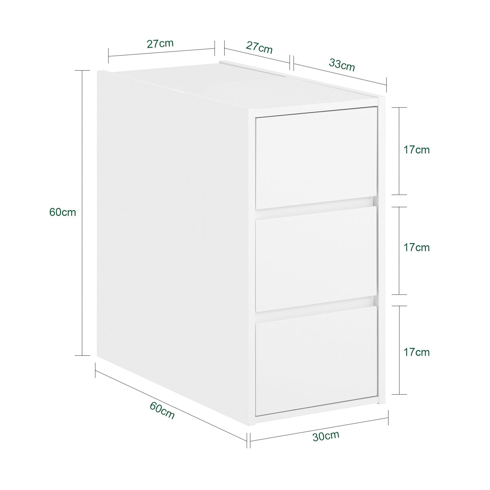 SoBuy FBT144-W Table d'appoint / Table de chevet / Table banc - Blanc - 30x60x60 cm - Table de rangement compacte avec 3 tiroirs et compartiment vertical