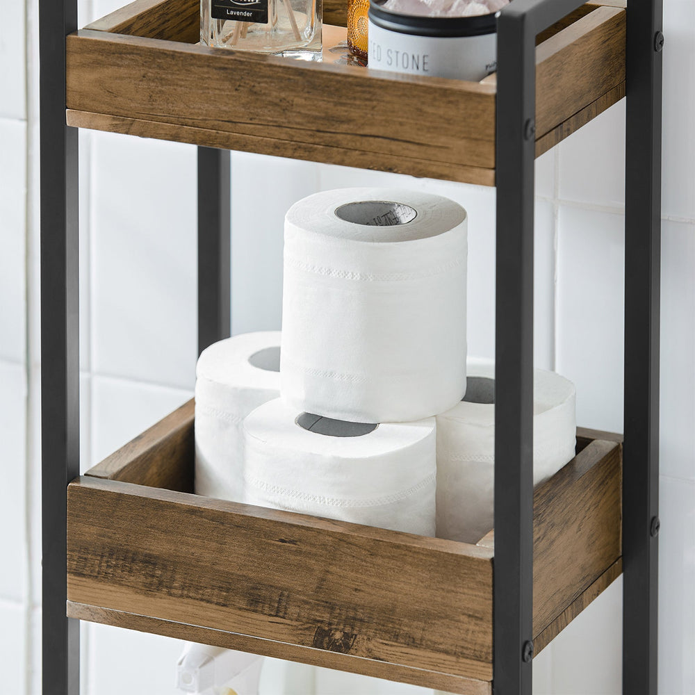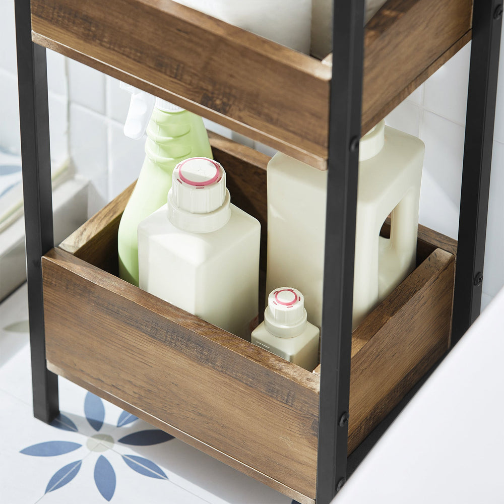 - Petite étagère de salle de bain avec 3 paniers fixes de tailles différentes : espace de rangement supplémentaire pour les accessoires de salle de bain, les cosmétiques, les outils, etc.