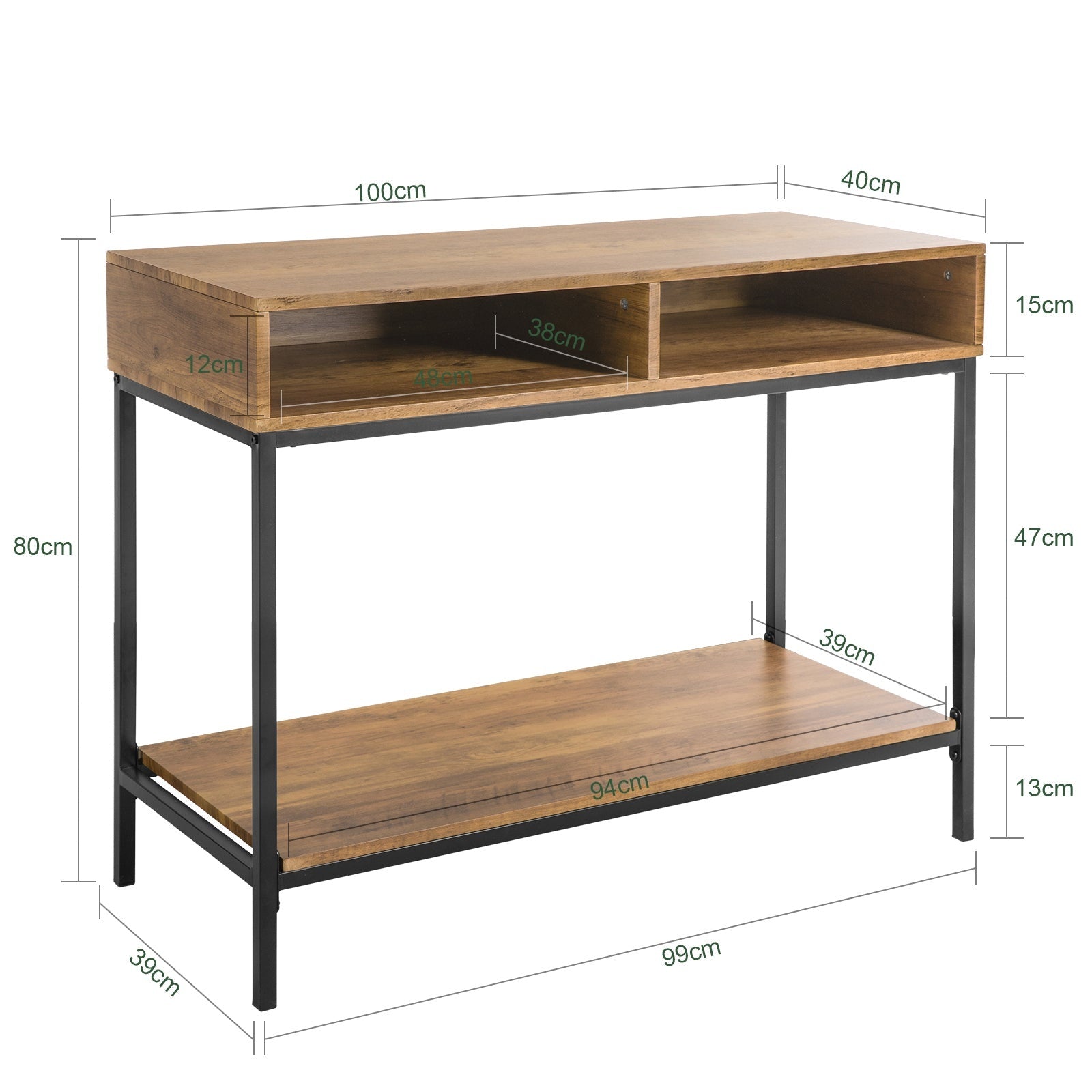 SoBuy Table d'appoint - 2 compartiments de rangement - Structure en acier - 100 x 40 x 80 cm - Bois/métal