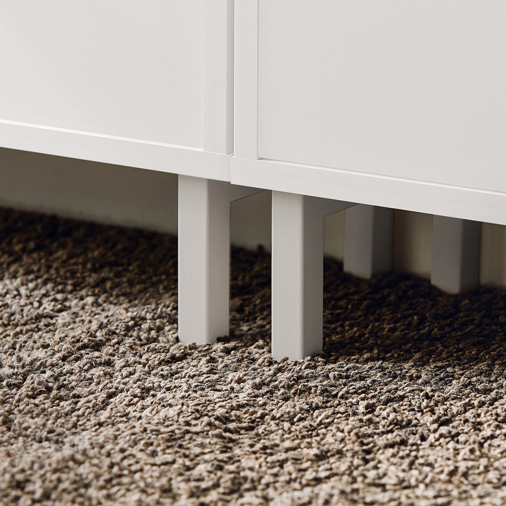 Fabriqué avec des matériaux de haute qualité, notamment du MDF (E1) avec une finition laquée blanche et des pieds en fer, ce meuble à chaussures est non seulement élégant, mais aussi durable et robuste. Il est facile à nettoyer et à entretenir, ce qui en fait un ajout pratique et fonctionnel à n'importe quelle pièce.