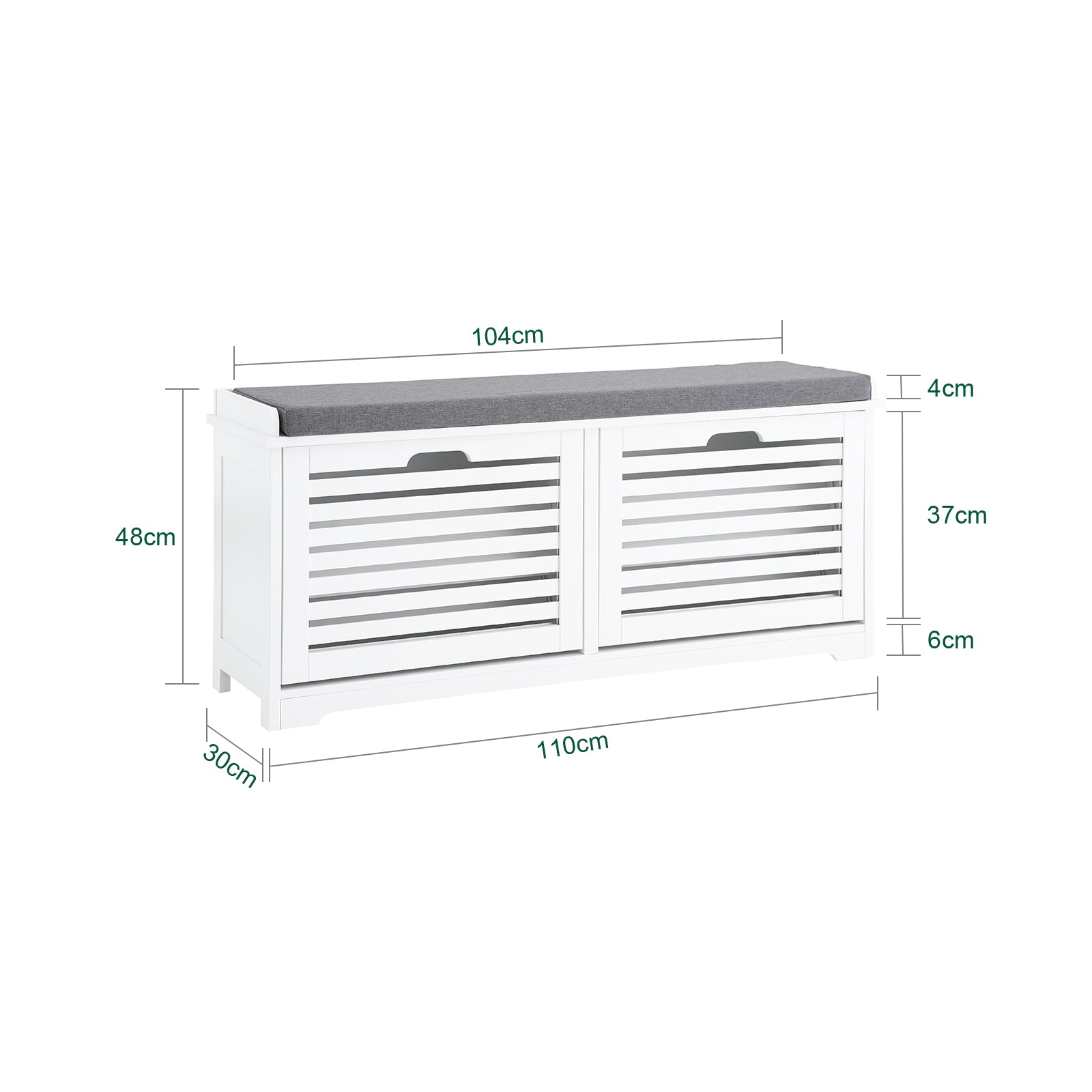 SoBuy FSR184-W - Banc à chaussures élégant avec coussin de siège et 2 rabats - compact et confortable
