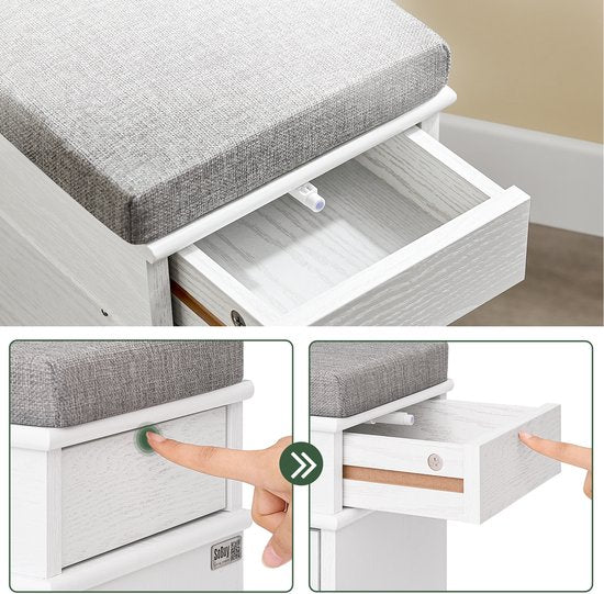 Organisation intelligente sur le côté : avec un tiroir intégré pour le cirage et les clés. Ce banc de rangement de chaussures multifonctionnel est parfait pour garder votre entrée propre et organisée.