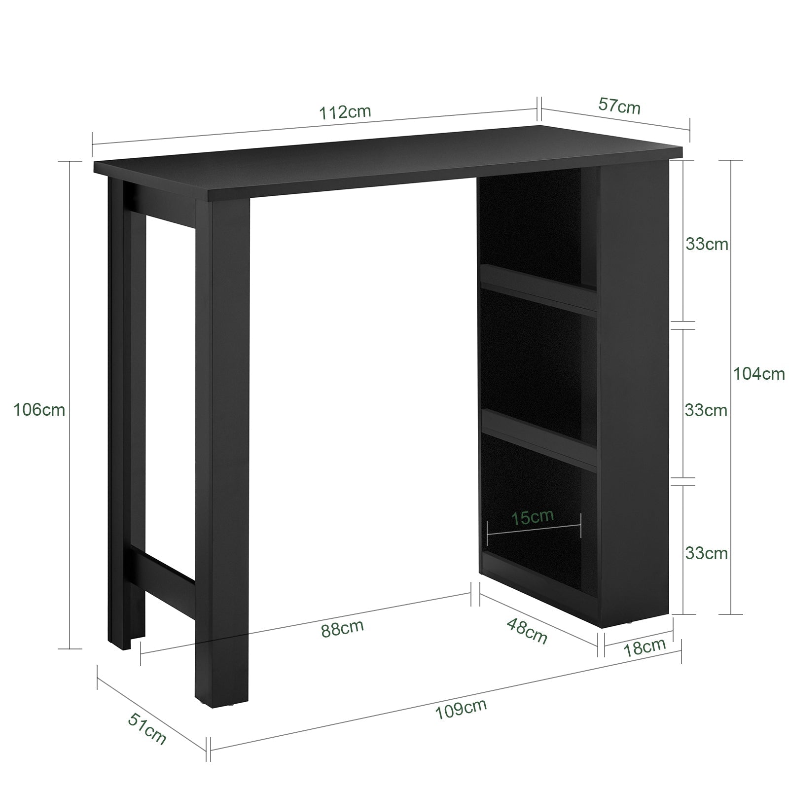 SoBuy FWT17-II-SCH Table de cuisine haute - Table de bar sur pied avec étagères de rangement pour les petits espaces - Noir - 112 x 57 x 106 cm