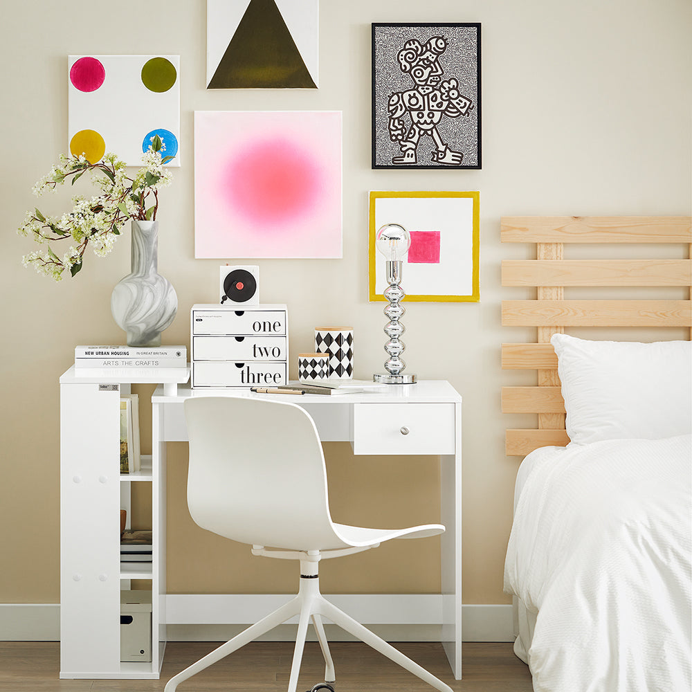 Optimisez votre espace de travail avec le bureau SoBuy FWT35-W, une solution fonctionnelle, moderne et compacte idéale pour le bureau à domicile, la chambre d’enfant ou le coin lecture. Conçu pour allier style épuré et praticité, ce bureau est équipé d’un tiroir spacieux et de trois étagères de rangement, vous permettant de garder vos documents, fournitures et appareils bien organisés.