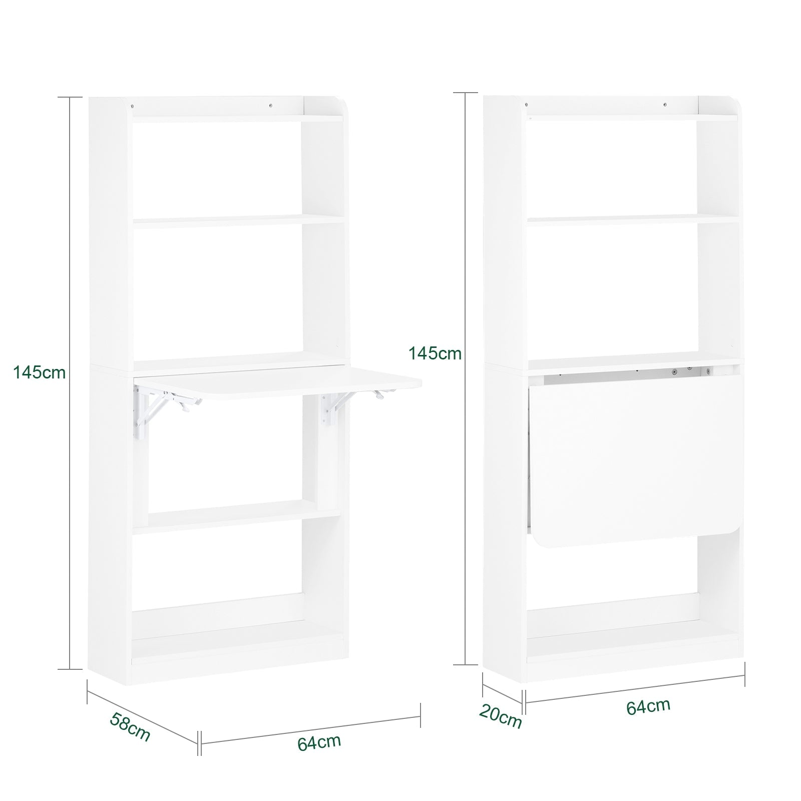 SoBuy FWT92-H-W Table d'écriture et d'ordinateur pliable avec 5 étagères - blanc, 64 x 145 x 58 cm