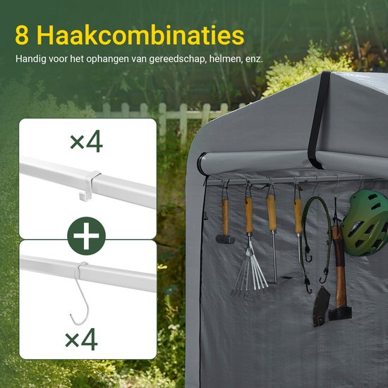 SoBuy KLS11-L-DG Garden House, Waterproof Outdoor Storage, Motorcycle Shelter with Hooks, Bicycle and Tool Garage, Bicycle Storage, Storage Space, Grey, 159x219x165 cm