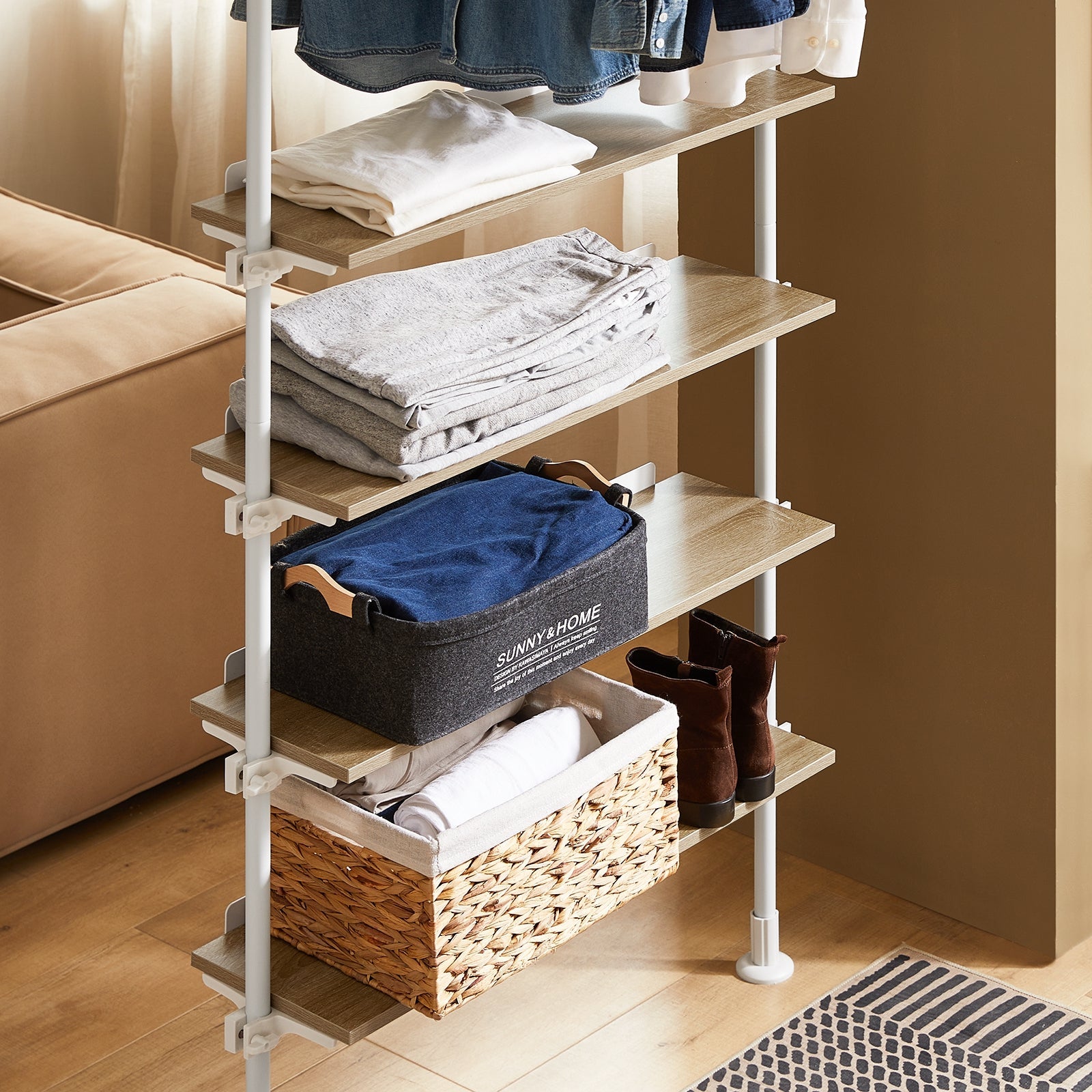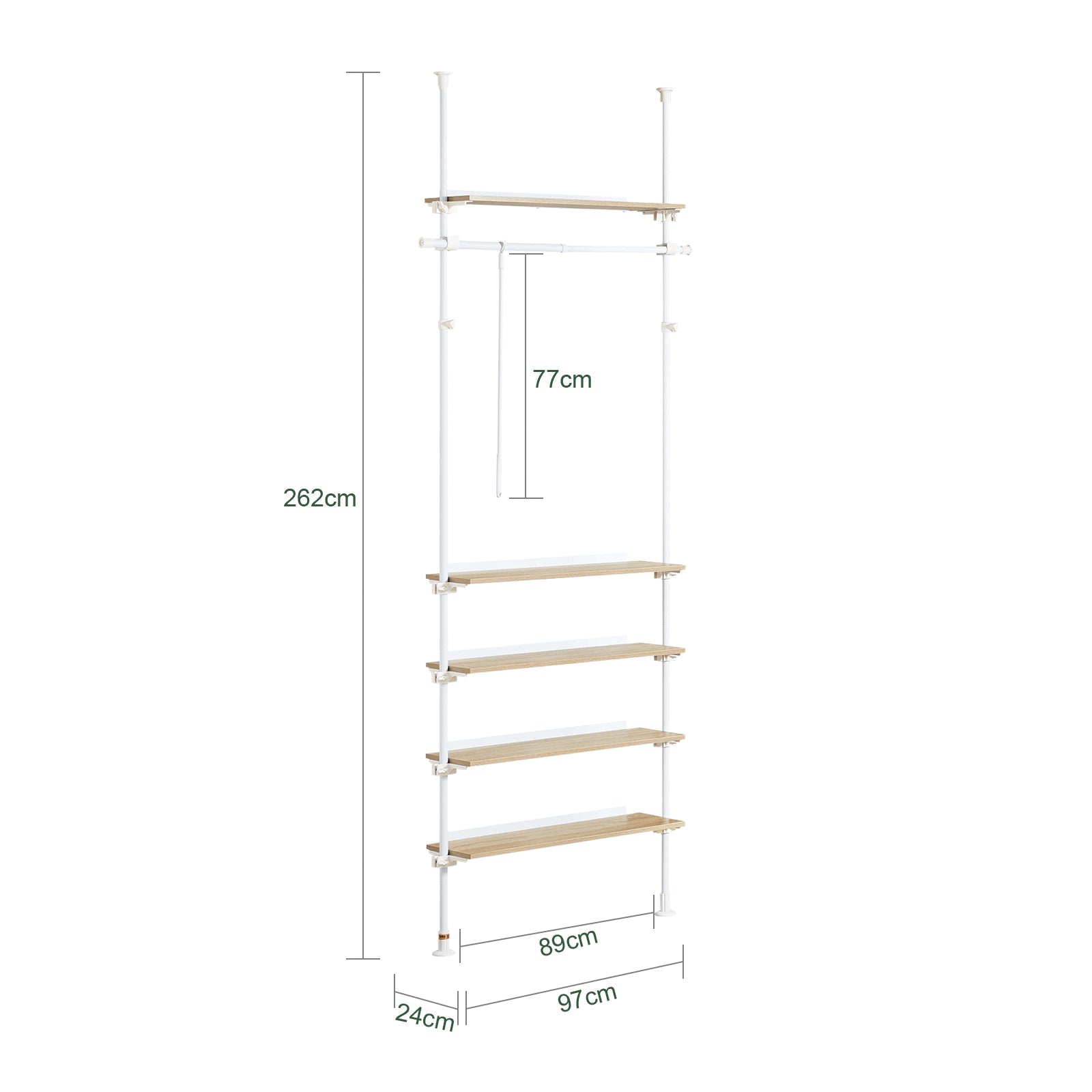 SoBuy KLS15-WN Porte-vêtements télescopique - réglable - 5 étagères - 1 tringle - L 97 x H (193-262) cm