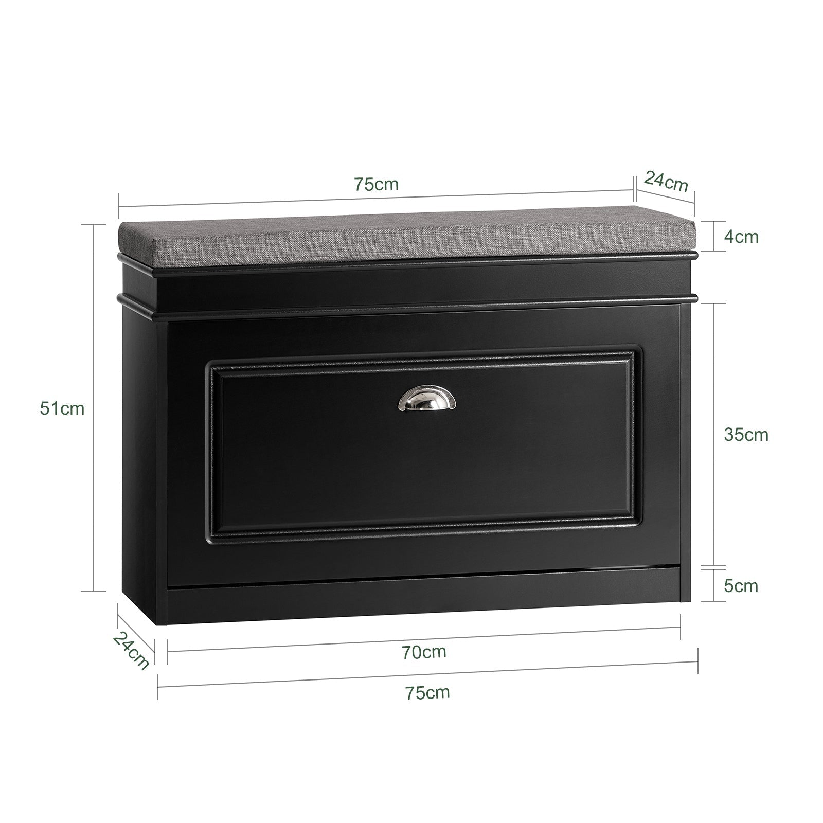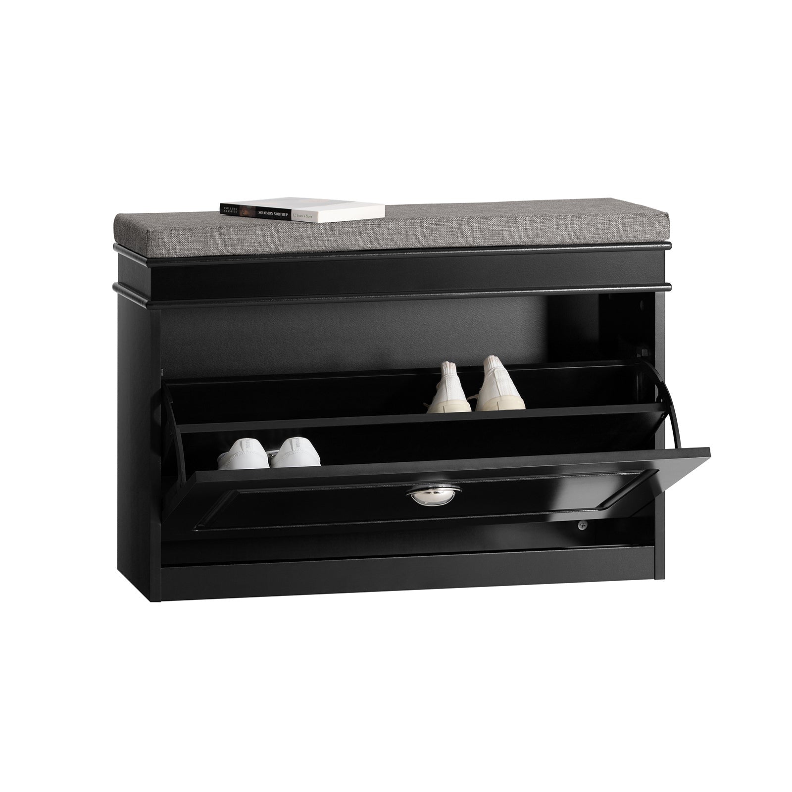 SoBuy Meuble à chaussures avec assise rembourrée - MDF - Max. 150 kg - 75 x 24 x 51 cm - Noir/ Gris