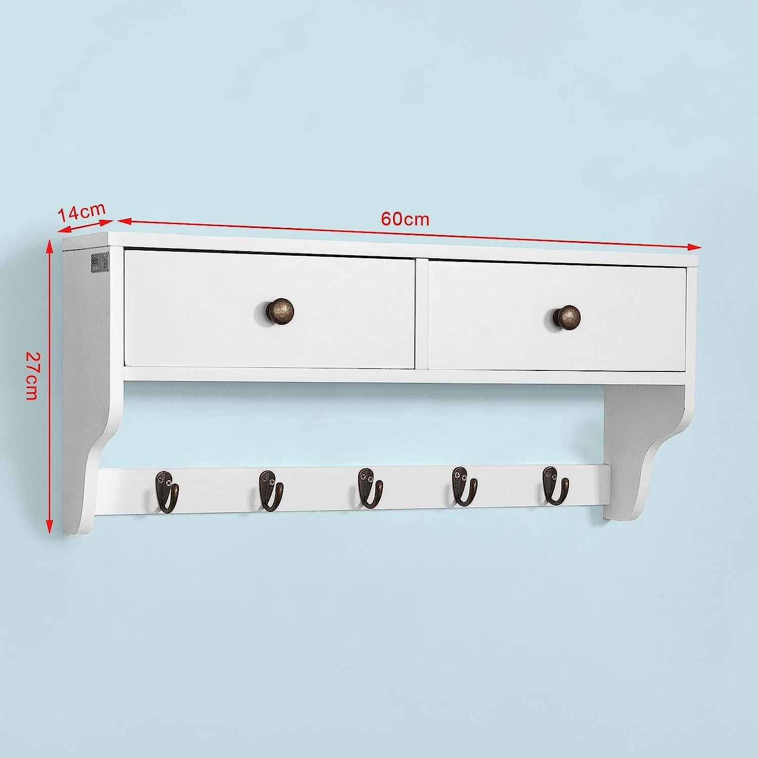 SoBuy Porte-manteau mural - 5 crochets - L60 x P14 x H27cm - Blanc