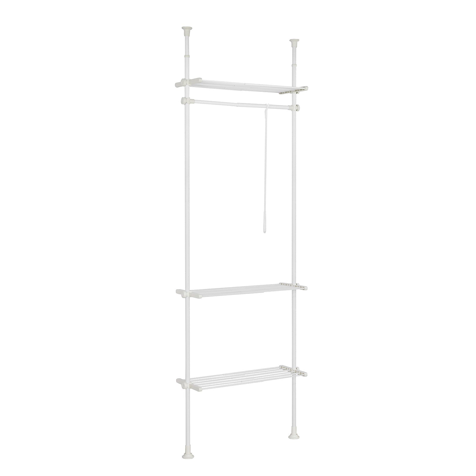 Grâce à la tringle à vêtements réglable en continu et aux 3 étagères, ce système offre beaucoup d'espace pour les robes, les manteaux, les hauts, les pantalons ou les chemises.