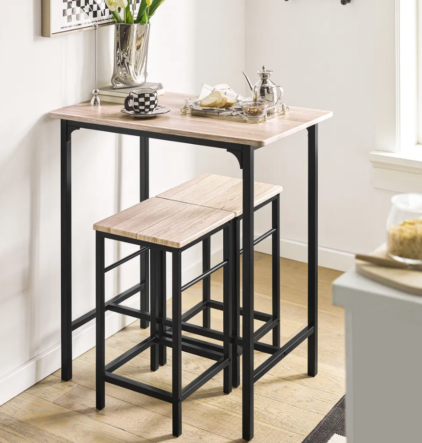 - Ensemble complet : L'ensemble comprend une table de bar élégante et deux tabourets de bar confortables, tous conçus avec le souci du détail et de la fonctionnalité.
