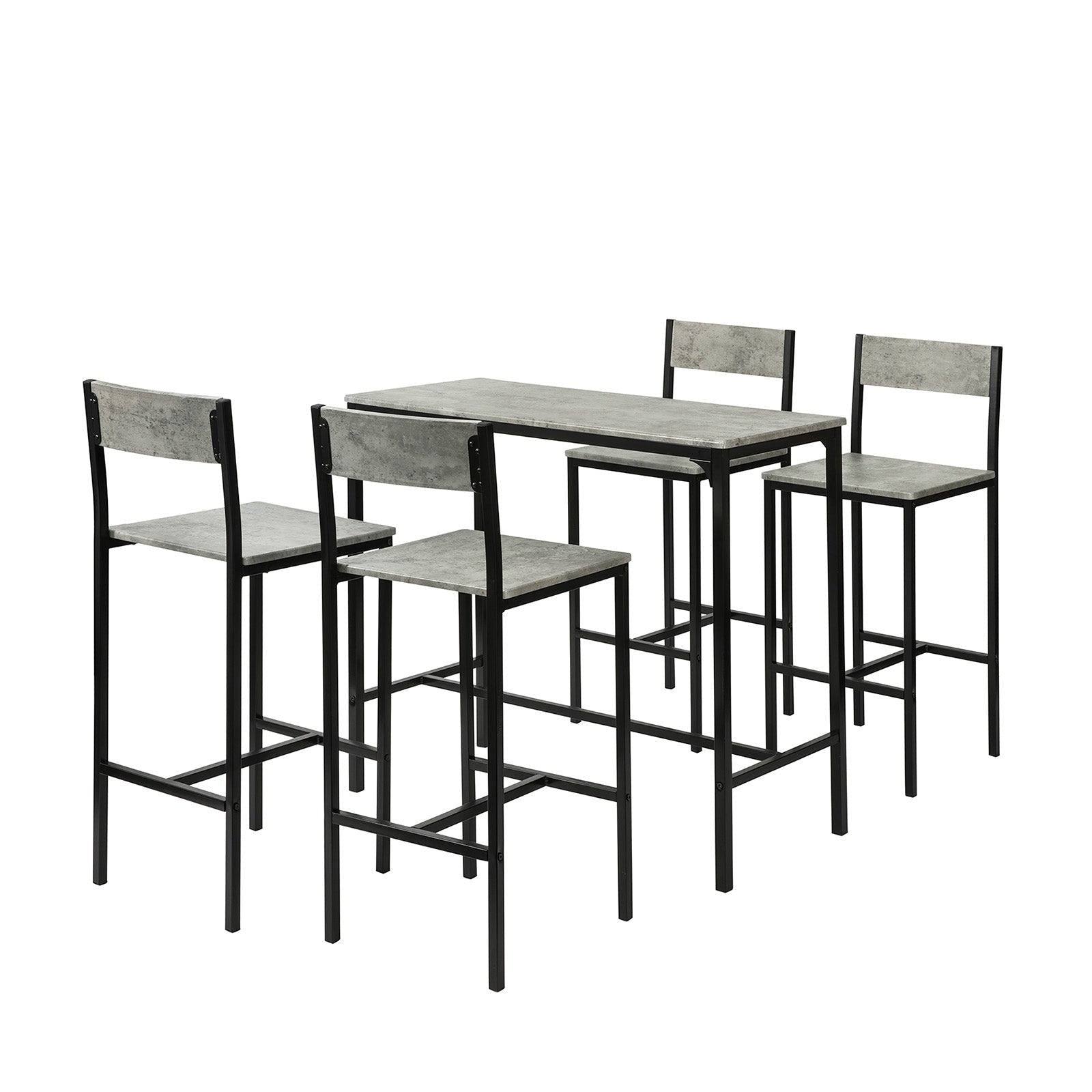 SoBuy Table de bar + 4 tabourets avec dossier - Moderne - max 120 kg - Gris/Noir