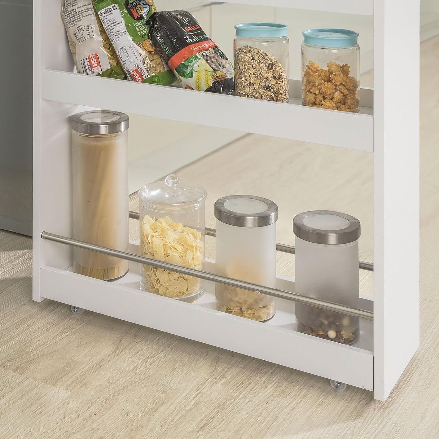 SoBuy Étagère de cuisine 4 niveaux sur roulettes - Max. 20 kg - 60 x 19 x 81 cm - Blanc