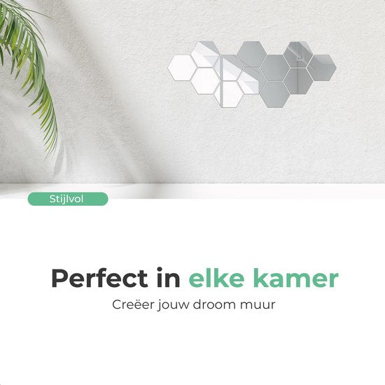 Soft&Silky 12 pièces de miroirs adhésifs - Forme hexagonale - 8x7x4cm