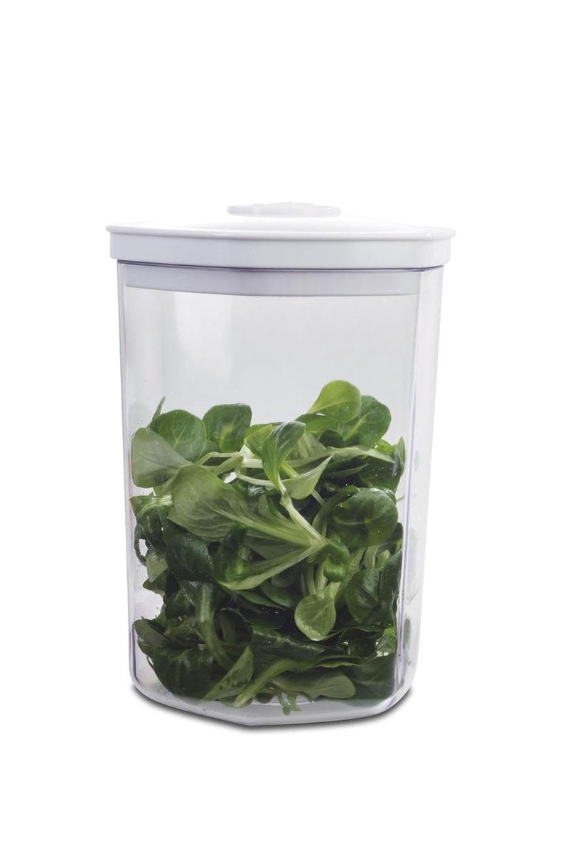 Le set de récipients de conservation Solis hexagonal est doté d'une valve de mise sous vide avec joint en silicone pour une mise sous vide durable. Les récipients sont fabriqués en SAN (Styrène-Acrylonitrile) transparent et hygiénique et le couvercle est en plastique ABS. Les conteneurs fraîcheur conviennent aussi bien au réfrigérateur qu'au congélateur. Pour compléter l'ensemble, un tuyau de mise sous vide est fourni avec les conteneurs de stockage.