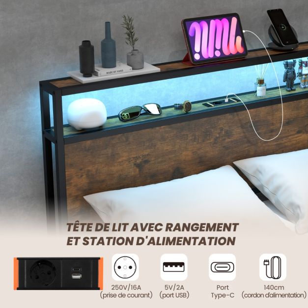 Ce lit unique associe un style industriel à des solutions technologiques innovantes pour créer l'endroit idéal pour se détendre. Grâce à l'éclairage LED intégré et aux différents modes (y compris la synchronisation avec la musique), vous pouvez ajuster l'atmosphère à votre convenance. La construction métallique robuste de 160 x 200 cm supporte une charge allant jusqu'à 500 kg et garantit stabilité et durabilité. Le lit est doté de tiroirs en tissu pratiques et d'une station de recharge (connexion CA, USB et Type-C), ce qui en fait un meuble non seulement élégant mais aussi très fonctionnel pour la maison ou le bureau.