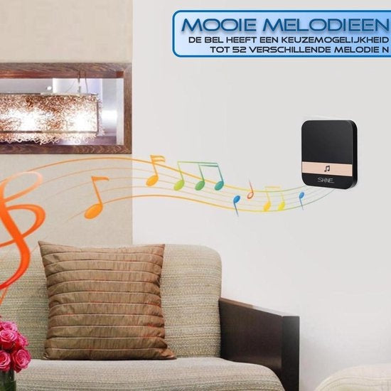 SHINE Gong Video doorbell - Carillon pour Maxi, Gologi, Living Needs, Aye Cam, Winnes, Zedar, Life Deco | Récepteur avec 52 mélodies - Noir
