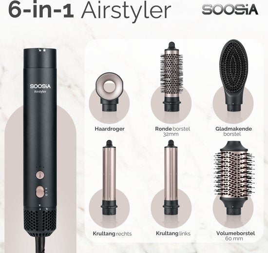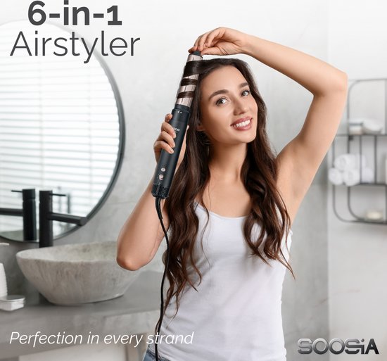 Soosia 6-in-1 Airstyler - Sèche-cheveux et fer à friser - Sèche-cheveux - Multistyler - Brosse à cheveux et brosse à boucler - Enveloppe pour cheveux