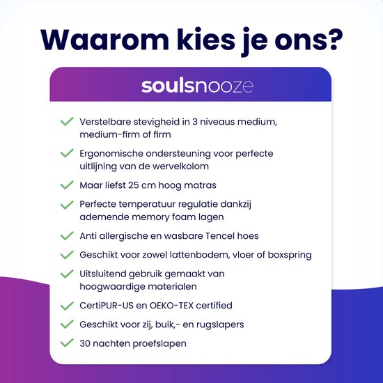 Investissez dans votre sommeil dès aujourd'hui et découvrez les avantages du matelas Soulsnooze® FlexComfort Premium pour votre bien-être.