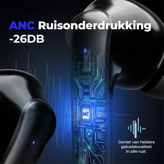 Soundfront Ultimate Wireless Earphones - Ecouteurs Bluetooth - 26dB Active Noise Cancelling - Ecouteurs sans fil - Convient aux Smartphones et aux ordinateurs portables - Noir