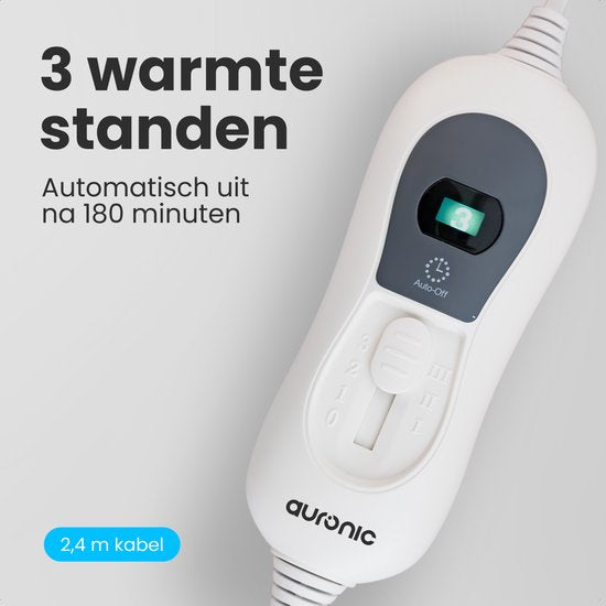 Dieu aux nuits froides avec la couverture électrique Auronic ! Cette sous-couverture chauffante vous assure de ne plus jamais avoir à vous coucher dans un lit frais. Avec trois niveaux de chaleur réglables de 35°C à 55°C et un arrêt automatique après 3 heures, vous bénéficierez d'un confort thermique optimal. Idéale pour les personnes souffrant d'une mauvaise circulation sanguine ou d'arthrose. Grâce aux coins élastiques, la couverture reste bien en place.