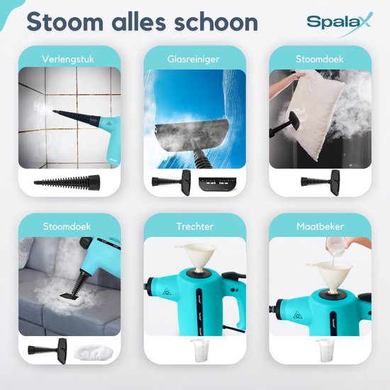 Spalax 14-en-1 Nettoyeur vapeur - 3.5 Bar Nettoyeur vapeur à main - Nettoyer les taches - Nettoyer à la vapeur le sol, le canapé, le tapis et les vêtements - Nettoyeur vapeur à main - Nettoyeur de tapis - 1050W - 350 ML