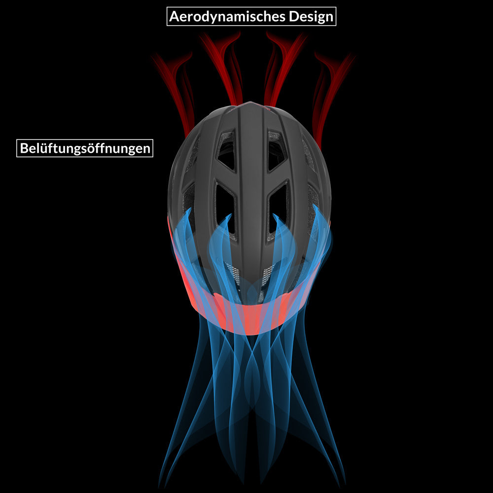 Le casque offre une protection supplémentaire contre les chocs grâce à sa visière flexible. Le design aérodynamique avec 21 évents est non seulement esthétique, mais permet également à l'air froid d'entrer et à l'air chaud d'être expulsé de la tête. Un filet anti-mouches à mailles fines empêche les insectes de pénétrer.