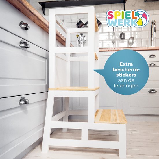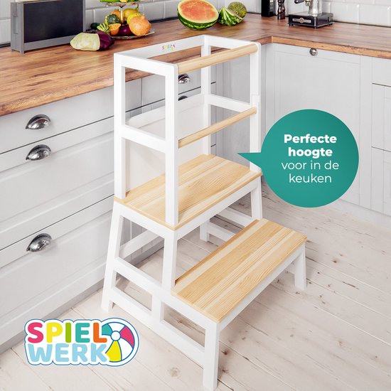 Les enfants adorent être près des adultes et les imiter ! La tour de jeu Spielwerk® permet aux jeunes enfants d'atteindre en toute sécurité des plans de travail plus élevés, ce qui les aide à cuisiner, à faire des pâtisseries ou à déguster des friandises.