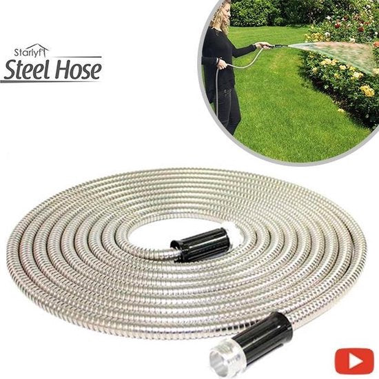 Le tuyau d'arrosage en acier Starlyf est le tuyau d'arrosage idéal, léger et fabriqué en acier inoxydable 304 de haute qualité. Disponible en longueurs de 7,5 m, 15 m et 22,5 m, vous pouvez facilement arroser vos plantes ou nettoyer votre voiture. La conception anti-pliage et antirouille vous permet de déplacer le tuyau sans effort sur les pierres et l'herbe sans aucun dommage. Le tuyau d'arrosage en acier est facile à utiliser et à ranger, ce qui en fait un choix essentiel pour tout jardinier.