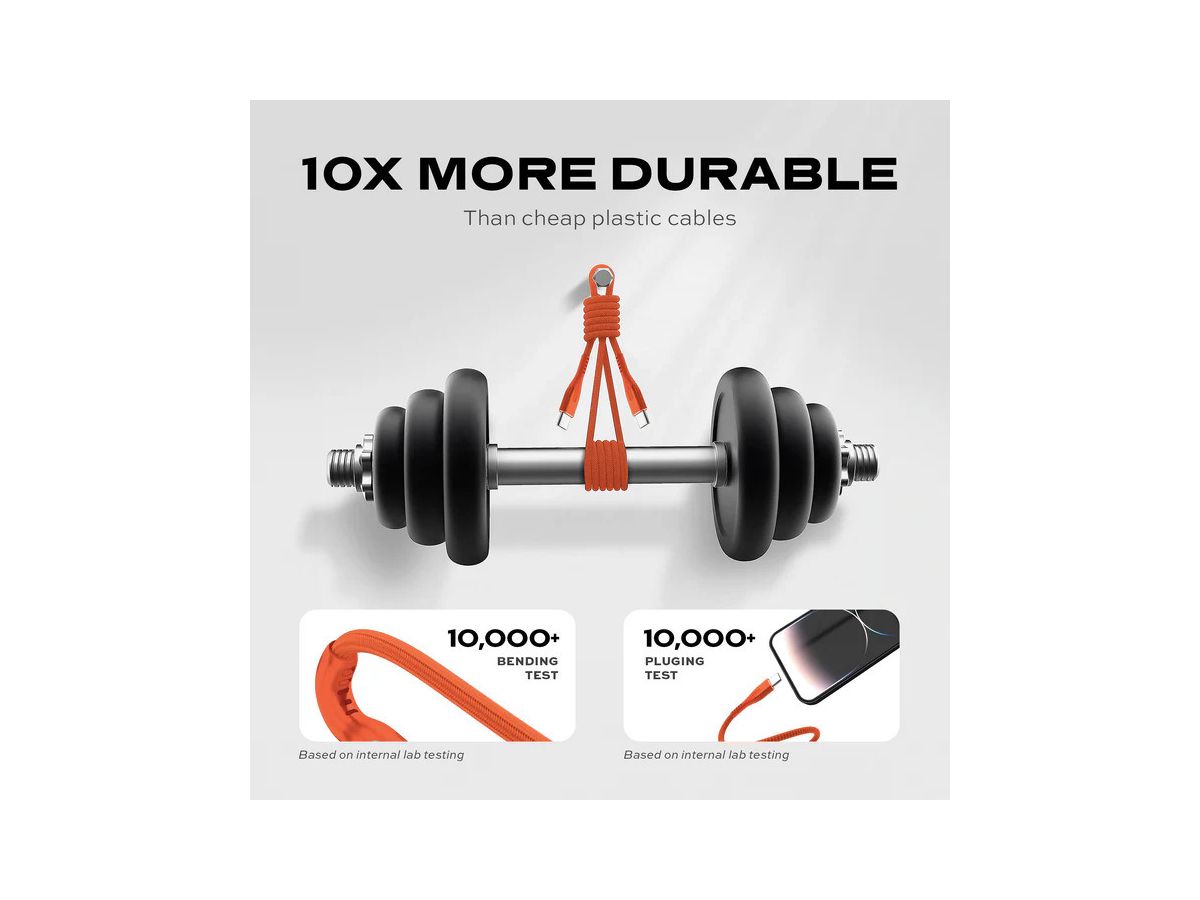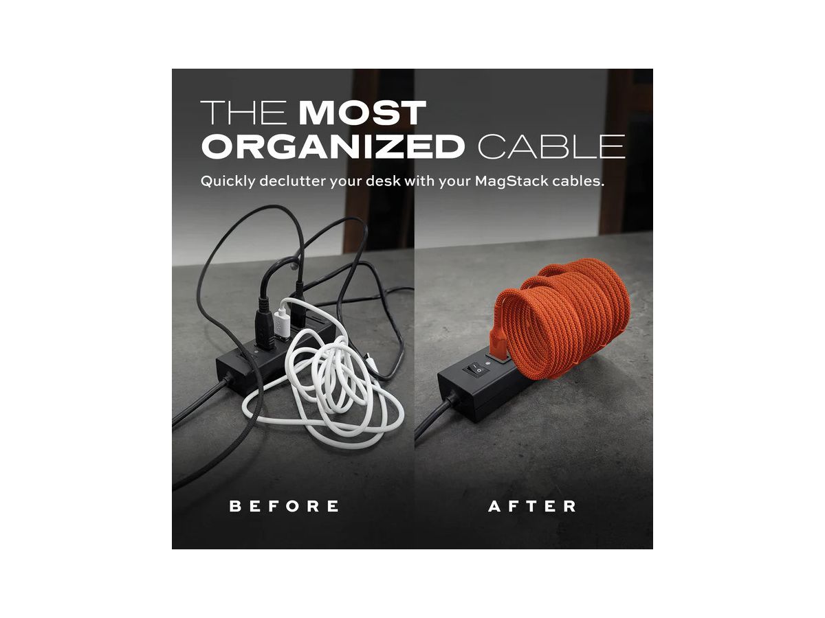 Les puissants aimants sur toute la longueur garantissent que le câble s'enroule instantanément dès que vous le relâchez. Plusieurs câbles MagStack Pro s'emboîtent facilement, ce qui permet de les ranger aisément. La couleur orange vif facilite l'organisation de vos câbles grâce à un code couleur.