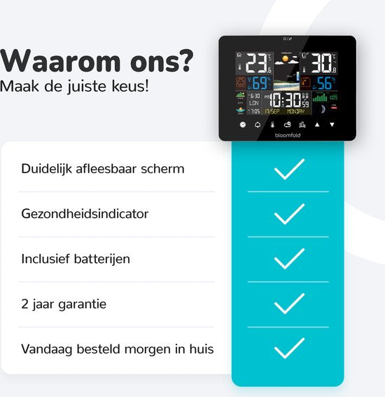 Augmentez votre confort et créez un environnement de vie agréable grâce à la station météo Bloomfold. Votre bien-être est notre priorité. Commandez aujourd'hui et recevez-la chez vous dès demain !