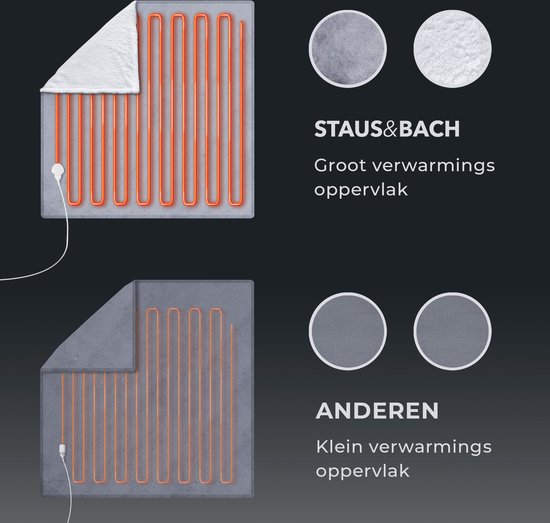 Couverture chauffante - STAUS&BACH - Couverture électrique - 2 personnes (160W) - Avec minuterie - 9 niveaux de chaleur - 180x160 cm - Anthracite