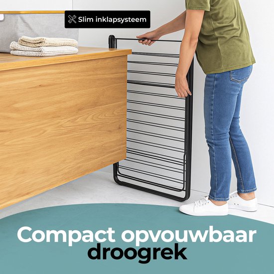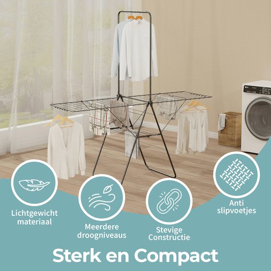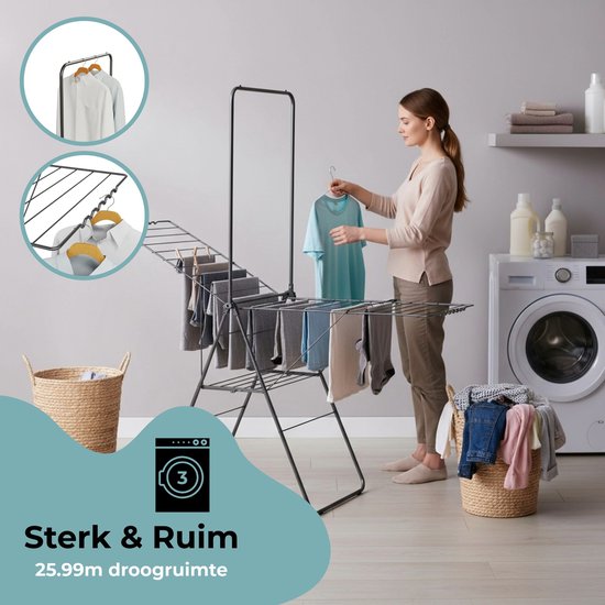 STAUS&BACH étendoir à linge avec tringle 25.99m - Étendoir à linge pliable - Acier - Noir mat - Aeriq Flex