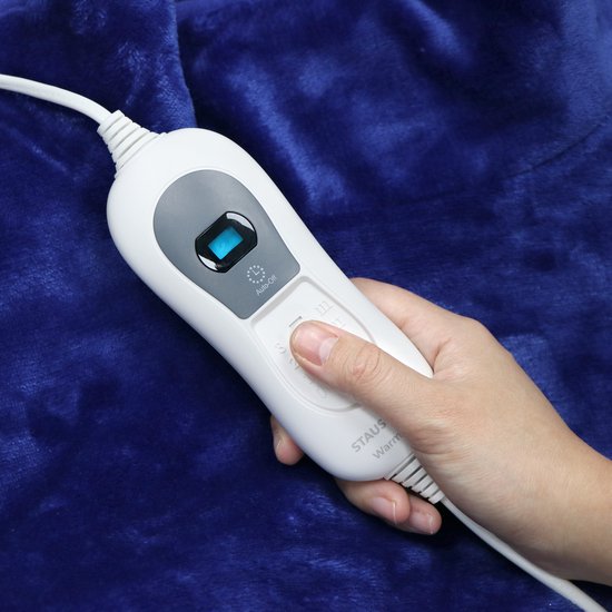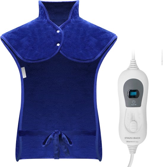 STAUS&BACH XXL Coussin chauffant électrique pour le cou, les épaules et le dos - 93x73 cm - 3 niveaux de chaleur - Coussin chauffant lavable - Coussin chauffant - Bleu foncé - WarmWrap