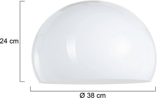 Cet abat-jour est un abat-jour rond et spacieux en plastique blanc. Doté d'un support supérieur, il convient aussi bien aux lampes suspendues qu'aux lampes à arc dotées d'une douille E27. Il a un diamètre de 38 cm et une hauteur de 32 cm.