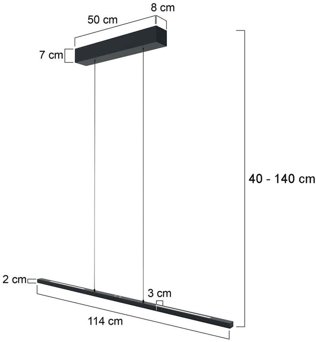 Apportez l'élégance moderne et la fonctionnalité dans votre maison avec la lampe suspendue LED Steinhauer Bande en métal noir épuré. Cet objet design de haute qualité allie style et éclairage intelligent de manière unique : la lampe offre à la fois un éclairage par le haut et par le bas, ce qui vous permet d'adapter la lumière à toutes les situations. De l'éclairage ambiant et chaleureux à l'éclairage fonctionnel brillant &ndash ; la température de couleur est réglable entre 2200 et 4000 kelvins, tandis que la puissance lumineuse maximale de 3800 lumens garantit une lumière brillante et inaltérable. Grâce au système innovant de câble de levage, la lampe est facilement réglable en hauteur, ce qui permet de la suspendre parfaitement au-dessus de la table à manger, de l'îlot de cuisine ou de l'espace de travail. Les boutons tactiles intégrés permettent de commander la lampe sans effort et de manière intuitive. Avec son design épuré et minimaliste, la lampe suspendue Bande LED attire tous les regards et enrichit n'importe quel espace moderne. Elle dispose de 3 points lumineux, d'un IRC élevé de 90 pour des couleurs naturelles et d'une longue durée de vie de 15 000 heures. Elle est parfaite pour ceux qui recherchent une combinaison de design, de flexibilité et d'éclairage de haute qualité. Elle est assortie d'une garantie de 2 ans du fabricant, ce qui assure sa qualité et sa durabilité. Caractéristiques principales : Design moderne et élégant en métal noir 3 points lumineux LED intégrés, 3800 Lumens Température de couleur réglable : 2200 &ndash ; 4000 K Lumière supérieure et inférieure séparément dimmable Hauteur réglable avec système de levage par câble IRC élevé de 90 pour une fidélité naturelle des couleurs Parfait pour la table à manger, le bureau ou le salon