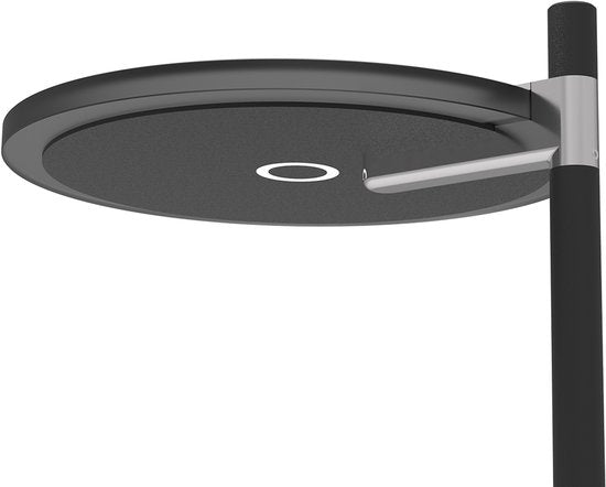 Lampadaire moderne noir de la série Turound avec un réflecteur en verre fumé. Ce lampadaire est équipé d'un module LED remplaçable de 40 watts qui produit 4000 lumens. La lampe peut être graduée et la couleur peut être réglée de 2200 kelvins (lumière jaune chaude) à 4000 kelvins (lumière blanche brillante). La commande s'effectue par l'intermédiaire d'un variateur à poussoir placé sur le tube. La hauteur totale de la lampe est de 187 centimètres et elle est livrée avec un cordon de 180 centimètres. Ce lampadaire de la marque Steinhauer est garanti 2 ans.
